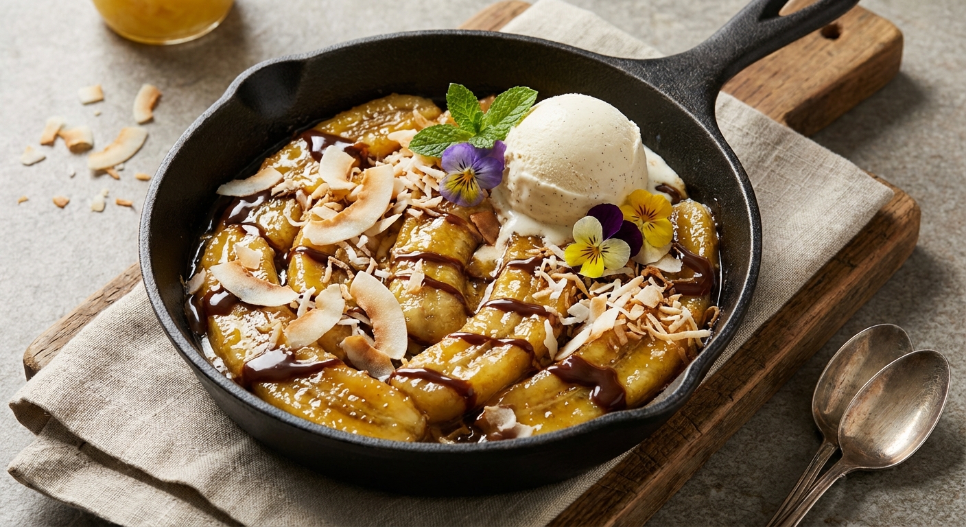 View Recipe →When a kitchen timer pings and the scent of caramelized bananas fills the air, I’m instantly transported back to Sunday evenings when my grandmother would improvise desserts from whatever was in the pantry. This Caramelized Banana & Toasted Coconut Skillet with Warm Pineapple-Chocolate Drizzle is a modern homage to those cozy, spontaneous moments — a dessert that feels indulgent without demanding a long culinary lecture. In just 25 minutes, you can coax the natural sweetness from ripe fruit, layer in the toasty crunch of coconut, and finish with a glossy chocolate drizzle that’s as comforting as a warm hug. It’s the kind of dish you make for two but secretly wish a crowd would appear so you can share the joy without overeating your own leftovers. For those who adore balanced, bold flavors, this skillet is a bright harmony of tropical brightness, toffee-like bananas, and a kiss of chocolate that lingers just long enough to keep you reaching for one more bite.