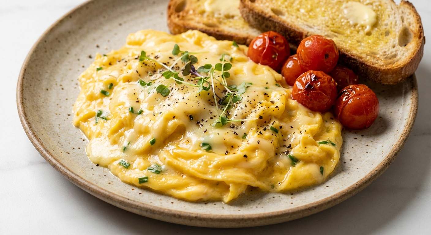 A 10-minute cheesy scrambled eggs recipe with cheddar, butter, and creaminess—perfect for cozy mornings, herbs, toast, and weekend brunch.